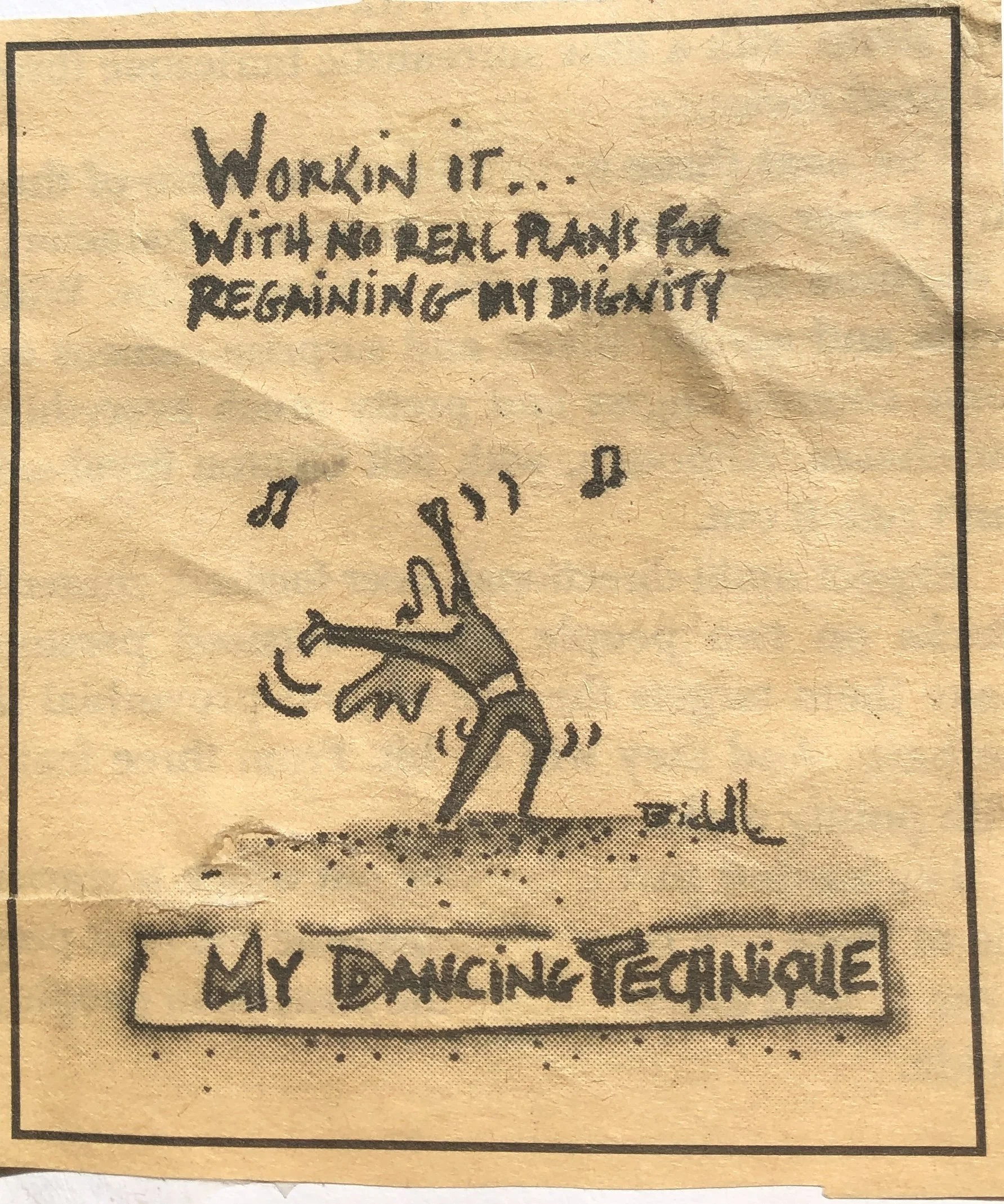 Photo by author of a cartoon she clipped years ago from the Funny Times and taped to the wall she stares at when sitting at her writing desk.